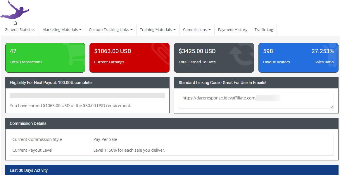Dare Academy cost $149 user used your affilate link you will receive 50% i.e. $74.50